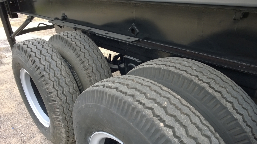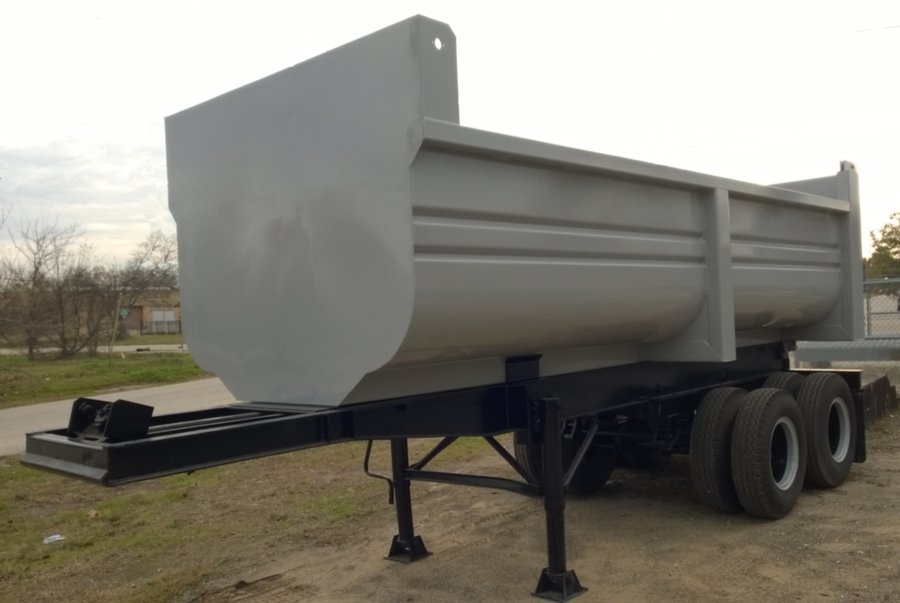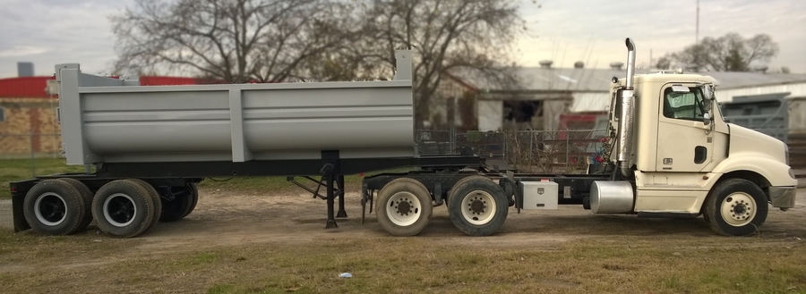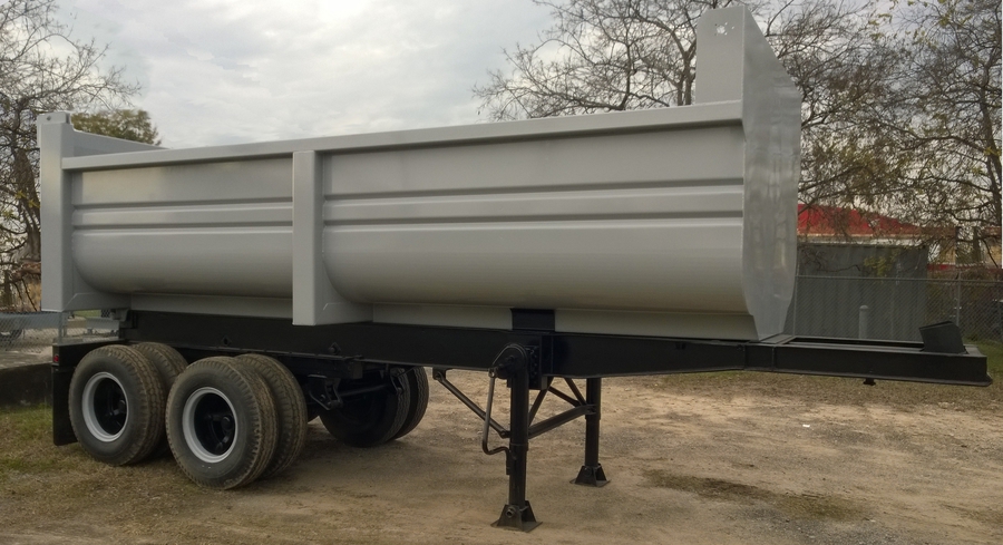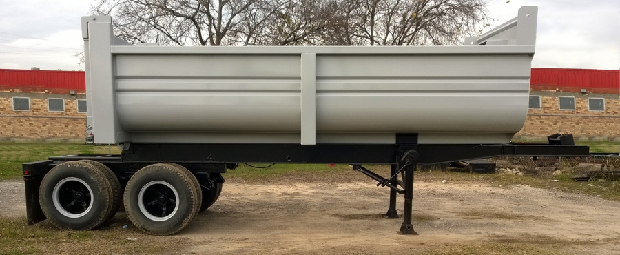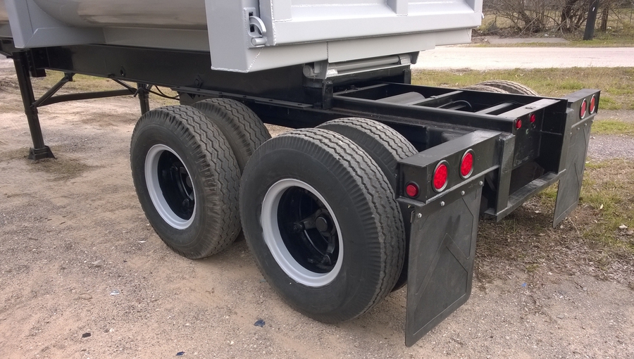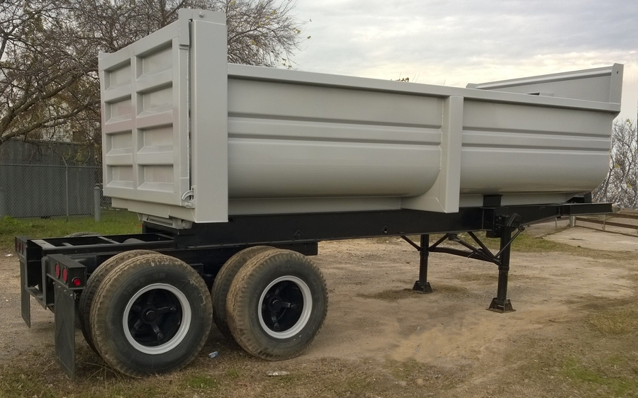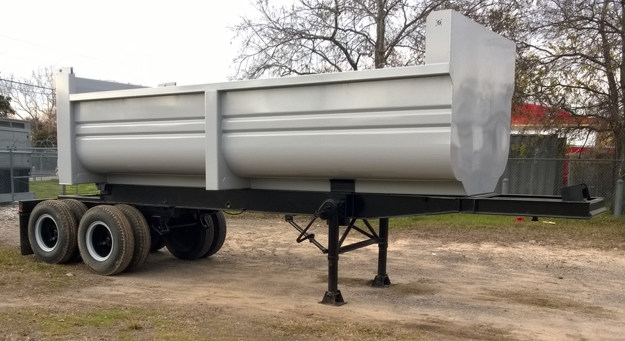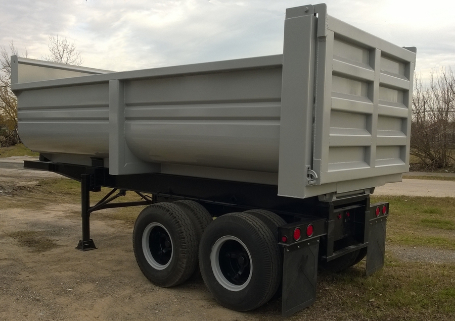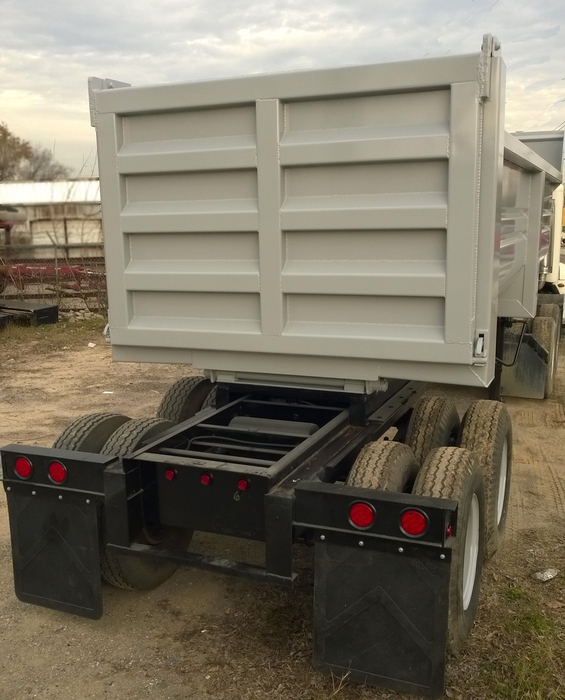 New 2015 Haul Lane Full Frame End Dump Trailer, 24' total length, with 4ft sliding tandems, new 20ft tub style bed with 3/16" walls and 1/4" floor, new hydraulic hoist, and used chassis. Several wheel and hub options are available. $21,500 including FET.