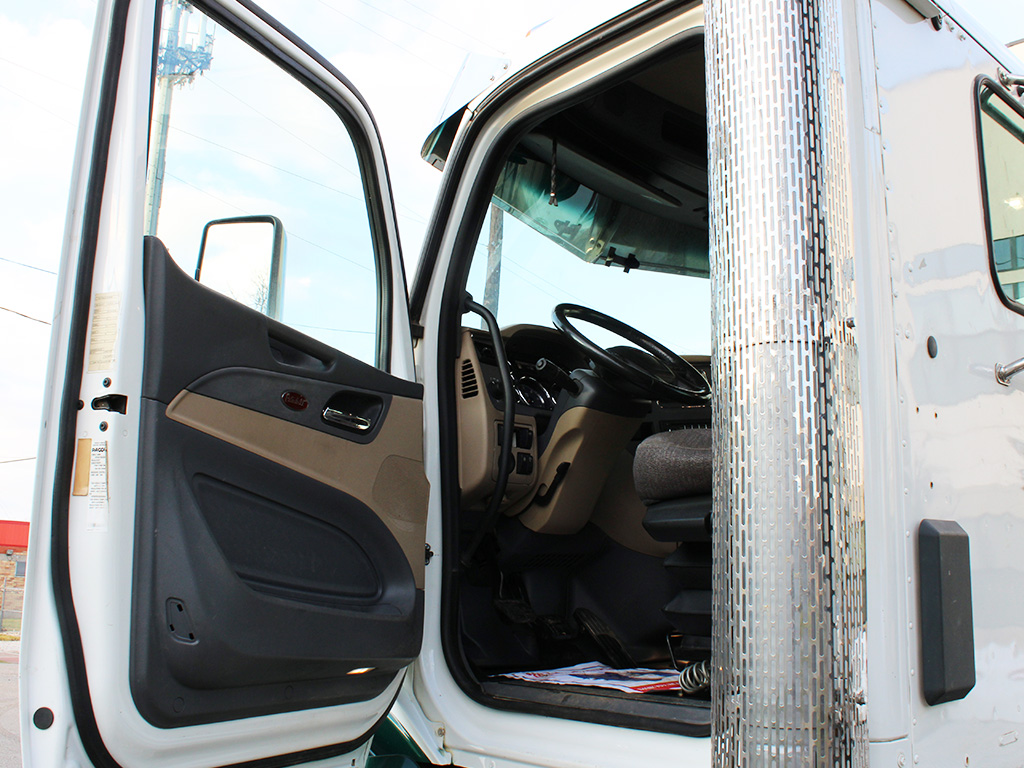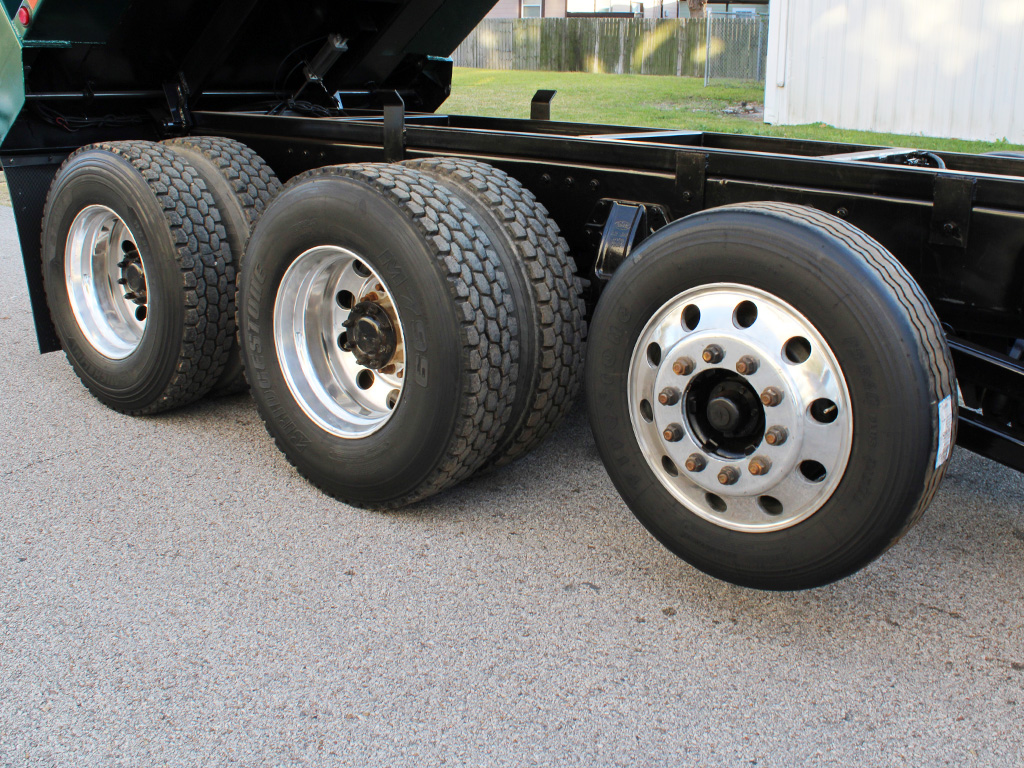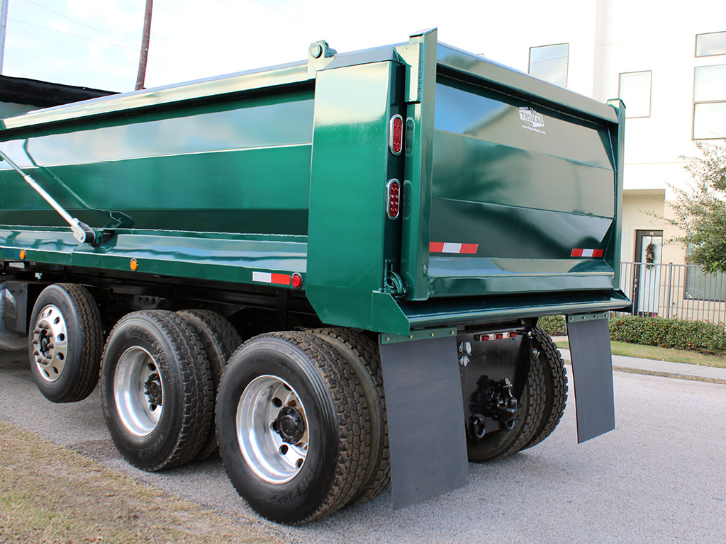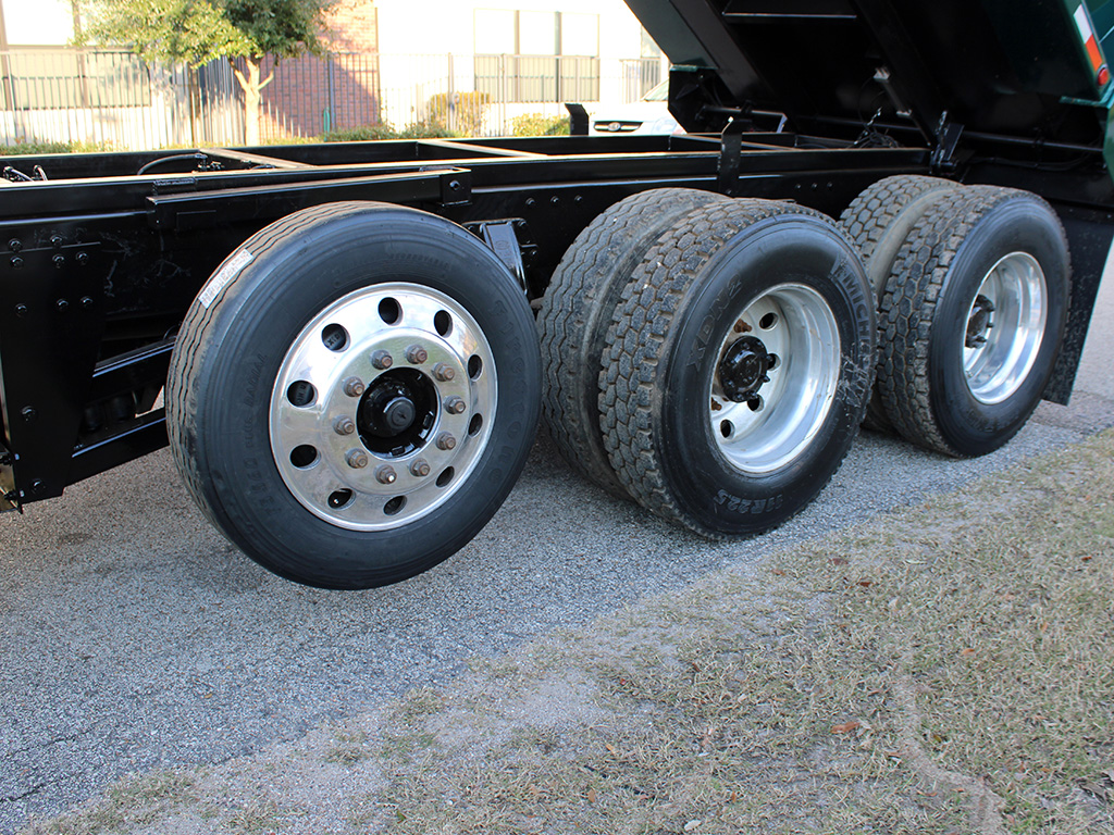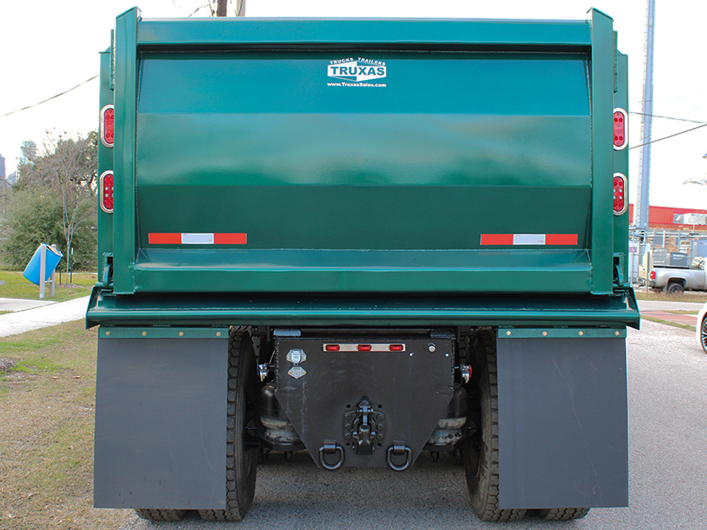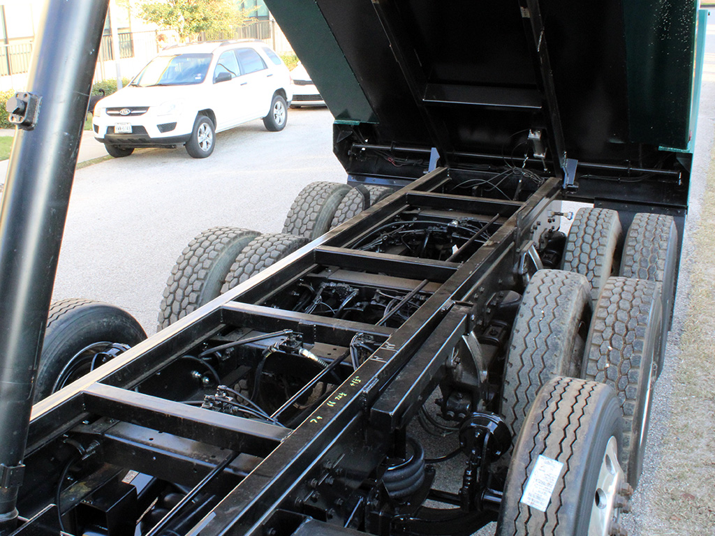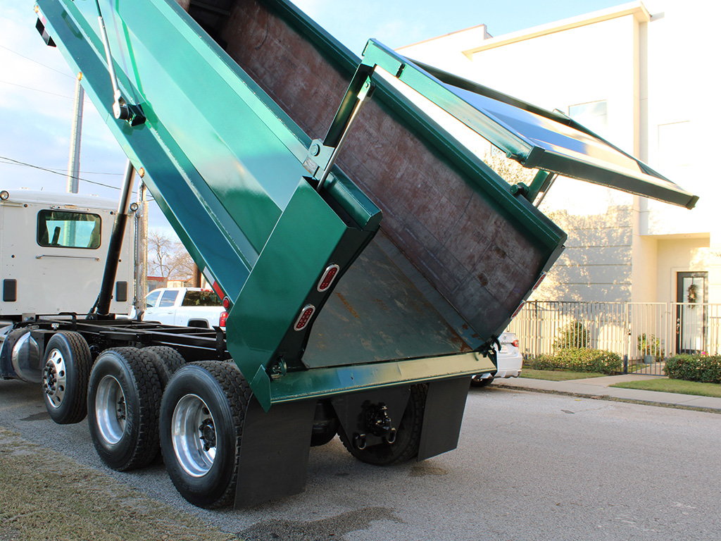 2016 Peterbilt 579 with New HD Load Lane Dump Body, including aluminum electric tarp, steerable lift axle, upgraded front suspension, and high lift tailgate.